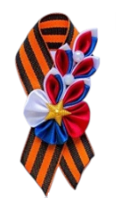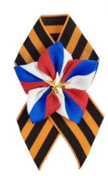 В нашем магазине вы найдете все самое необходимое для создания таких шедевров: лента георгиевская , триколор, атласные или репсовые ленты, бусины, булавку-основу для броши. Также можете купить значки к 9 мая.