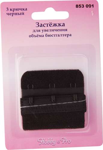 853001 Застежка для увел. объема бюст. 50мм 3 крючка черный