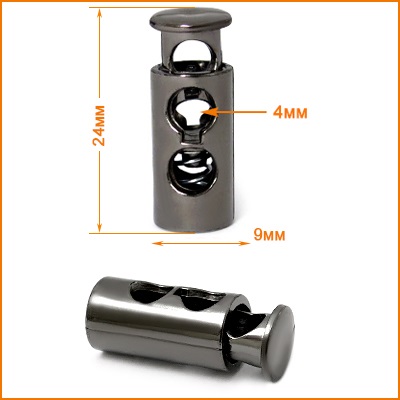 Стопор "цилиндр" 0305-3124 2отв. 9*24мм(ч.никель)(10шт)