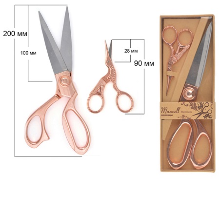 Набор из 2 ножниц: портновские 200мм + цапельки 90мм роз.золото Maxwell Vintage