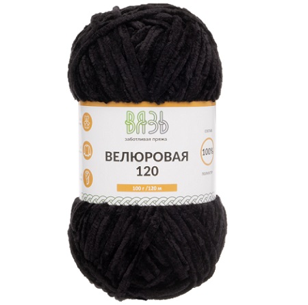 Пряжа Вязь 'Велюровая 120' 100гр/120м (3шт) (02 черный) (100% полиэстер)