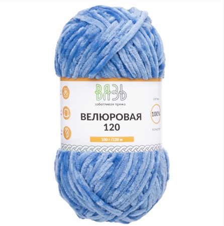 Пряжа Вязь 'Велюровая 120' 100гр/120м (3шт) (10 голубой) (100% полиэстер)