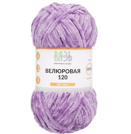 Пряжа Вязь 'Велюровая 120' 100гр/120м (3шт) (16 св.сиреневый) (100% полиэстер)