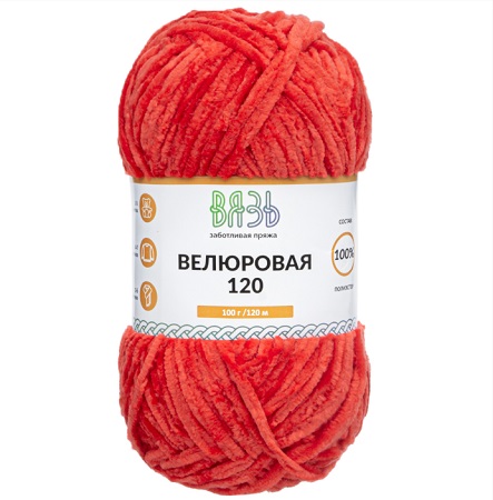 Пряжа Вязь 'Велюровая 120' 100гр/120м (3шт) (18 красный) (100% полиэстер)